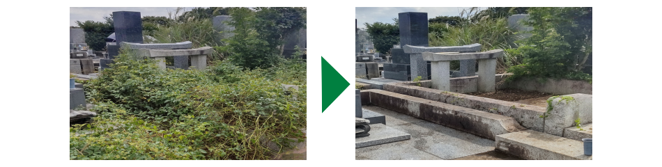 主に草刈りを実施します。その他、ご要望によりお線香やお花を供える、花立の清掃なども行います。