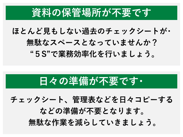 ②チェックシート、帳簿(管理表、薬の残数チェック表等)のペーパーレス化